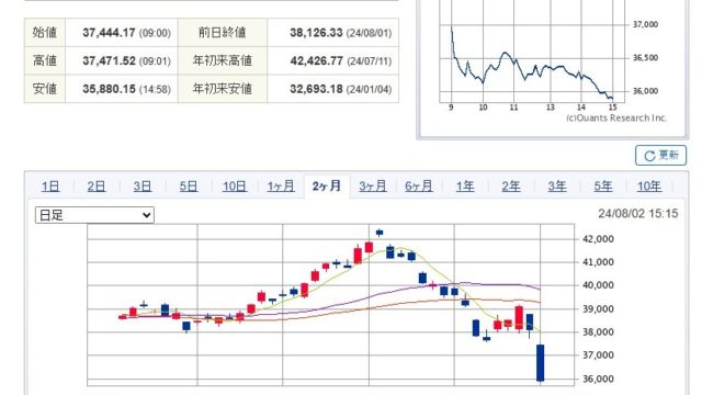 昨日(2024/8/2)の日経平均2200円以上下がりましたね!