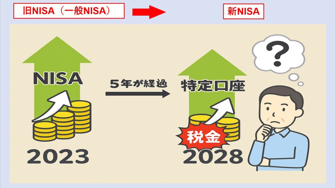 例えば2023年に一般NISAで購入した商品は2027年末まで非課税で保有可能です。
